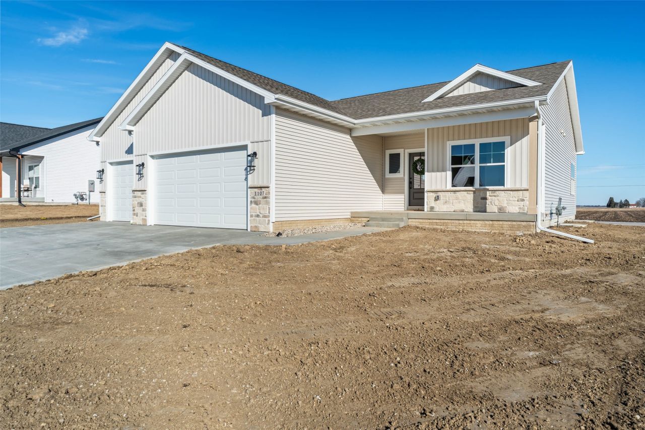 Welcome to this beautiful new construction at 1107 Nevada Street in the desirable South Glen Subdivision. Built by Claman Custom Homes, this thoughtfully designed home offers over 1,613 square feet of modern living with high end finishes throughout. Step inside to a wide open floor plan filled with natural light & durable LVP flooring in the living and kitchen areas. The kitchen features quartz countertops, a large center island, & a custom built walk in pantry, making it both stylish and functional. The main level also includes a custom mudroom bench and convenient laundry access. This home offers three spacious bedrooms and two bathrooms, including a private primary suite with a full tile walk in shower. The unfinished basement provides endless potential for future living space. Whether you envision a family room, additional bedrooms, or a game area, this space is ready for your personal touch and stubbed in for a future bathroom. A custom designed private entrance leads from the three car garage directly to the basement. Enjoy relaxing on the covered deck with scenic views of open Iowa fields. South Glen is a growing subdivision located near shopping, dining, walking trails, SCORE Park, the Nevada Field House, and the Aquatic Center, with easy access to Hwy 30. Added bonus, this home comes with a 3 year tax abatement through the City of Nevada (certain terms & conditions apply), making this an even more attractive opportunity providing modern design & unbeatable location