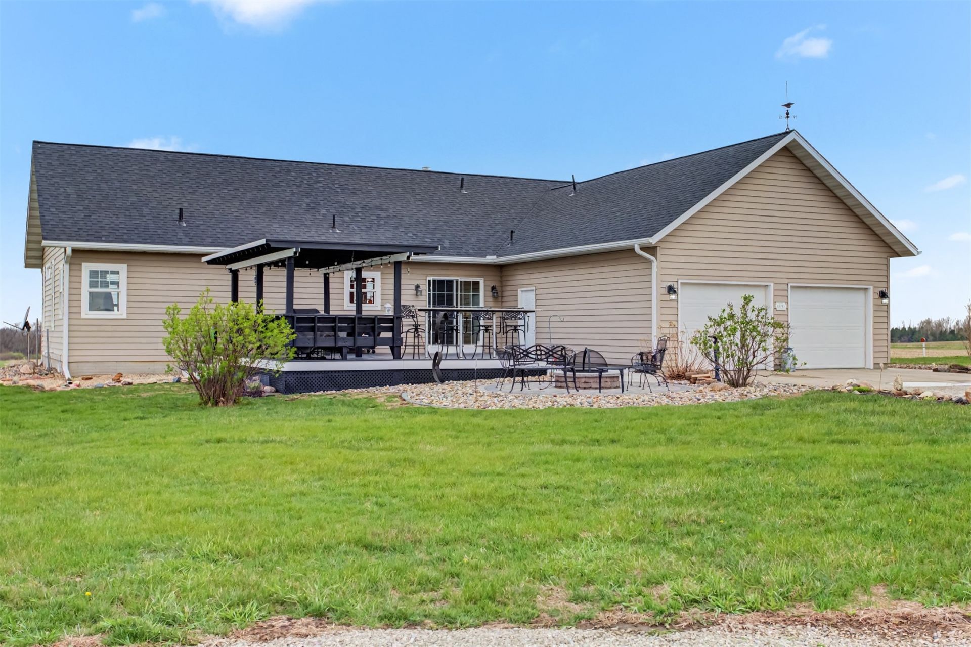 Looking for space to spread out? This 1,680 sq ft ranch outside of Farrar sits on 1.95 acres and features a 2-bedroom home plus a bunkhouse?perfect for guests, hobbies, or extra living space. Step inside to a spacious living room with an open floor plan, hardwood floors, abundant natural light, and a stunning floor-to-ceiling stone fireplace. The kitchen is designed for both function and style, offering an island with breakfast bar, granite countertops, walk-in pantry, wall oven, cooktop, and beautiful cherry cabinetry. The primary suite is a true retreat with scenic views of the property, a spacious layout, and a full bathroom featuring dual sinks, tile flooring, soaking tub, and separate shower. A second bedroom with an attached office and a ¾ bathroom completes the main level. Originally designed as a 3 bedroom home, this home offers flexibility to easily convert back if desired. Enjoy the outdoor space with a covered front porch, deck with pergola, and fire ring?perfect for relaxing or entertaining while taking in the peaceful setting. The nearly 2-acre lot provides space for hobbies, recreation, or simply enjoying the privacy and open surroundings. Additional features include a 2 car attached garage and a barn with a bunkhouse, complete with space for a bed and a ¾ bathroom, offering even more versatility for guests, workspace, or additional living quarters. Space, privacy, location, and Bondurant Farrar school district?this is one you don't want to miss!