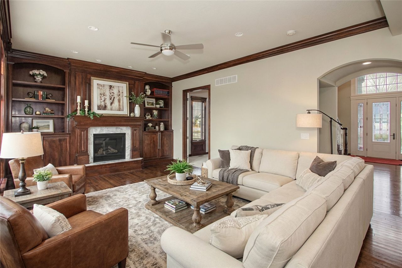 This beautifully crafted home, custom built by renowned local builder, Tasteful Homes, offers quality you can feel the moment you walk in. Experience efficient, year round comfort with geothermal HVAC and rest easy knowing the roof and siding were newly installed in 2023. This home features 4BR's, 3.5 bathrooms, 10' main floor ceilings, and a finished lower level with theater system and a full bar. Upon entering the home you will notice the grand two-story foyer with beautiful crystal chandelier and 8' Therma-Tru front door with sidelights. Immediately to the left is a formal dining room with trayed ceilings, trim details and formal style light fixtures on ceiling and wall. From there you'll walk into the impressive kitchen with floor to ceiling cherry cabinetry, granite countertops, expansive kitchen island and eat up breakfast bar area. With an informal dining and adjacent coffee/wine bar. You'll marvel at the living room that is flanked with large southern exposure windows, gas fireplace and built-in cabinetry on both sides. Hardwood floors in the foyer, kitchen, informal dining and living room! Also on the main level is a formal living room, 1/2 bath and laundry room. The upper level boasts three bedrooms. The primary suite is the perfect homeowner's suite with ample space for large furniture, in-room seating and/or table/desk area. Assessed value does not include the finished basement.