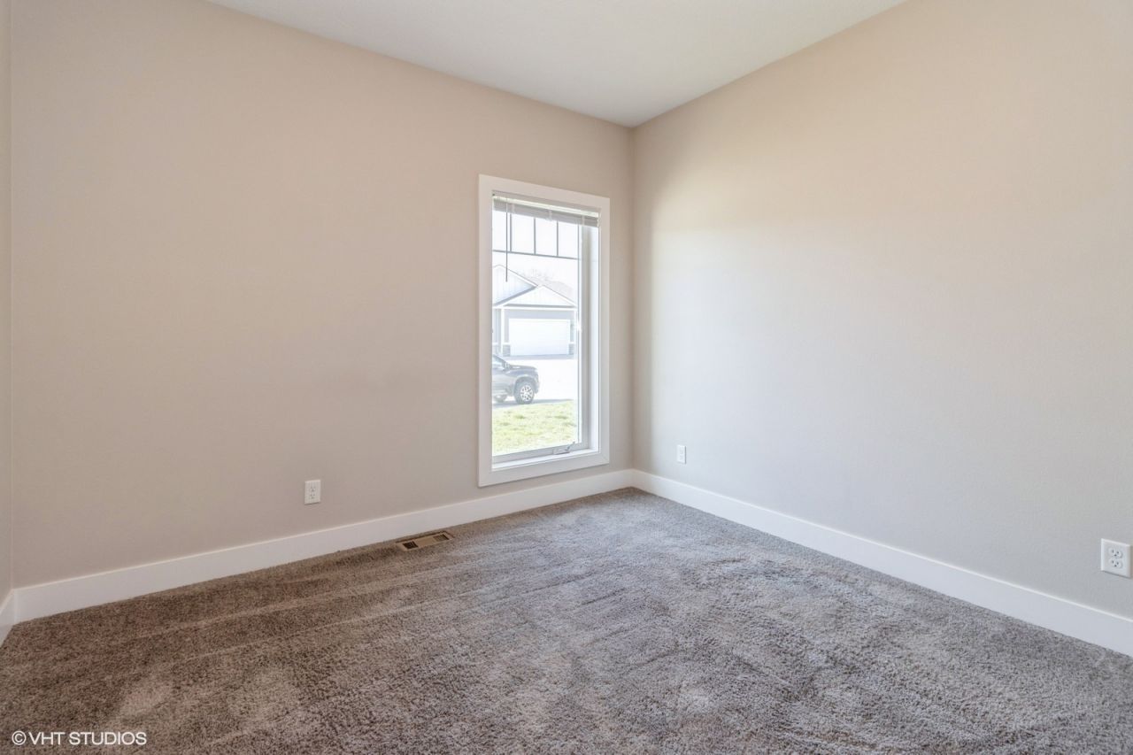 Modern Ranch Townhome-where comfort, convenience, and community come together! This beautifully designed 4-bedroom, 3-bath ranch-style duplex townhome offers low-maintenance living so you can spend more time enjoying life and less time on chores. The HOA takes care of snow removal, irrigation, and exterior upkeep, giving you peace of mind year-round. The spacious open concept floor plan has split bedrooms on the main level for extra privacy?ideal for families or guests. The kitchen is perfect for hosting, featuring a large island with granite countertops, durable LVP flooring, and seamless flow into living and dining areas. Curl up by the cozy fireplace or take advantage of main-level laundry for added convenience. The owner's suite is a private retreat, complete with tray ceilings, a walk-in shower, and a generous walk-in closet. A built-in fire sprinkler system adds an extra layer of safety. The finished lower level offers a large family room, two more bedrooms, and a full bath?perfect for guests, a home office, hobby space- or all three!. Step outside to your private back patio?ideal for summer grilling. You're just steps away from a scenic walking trail to Woodlawn Park, a charming community garden, and playground. Take advantage of remaining tax abatement! Seller is offering $1,000 allowance for stove and all other appliance stay. Don't miss your chance to own this incredible home-schedule your showing today! Listing contains digitally staged photo.
