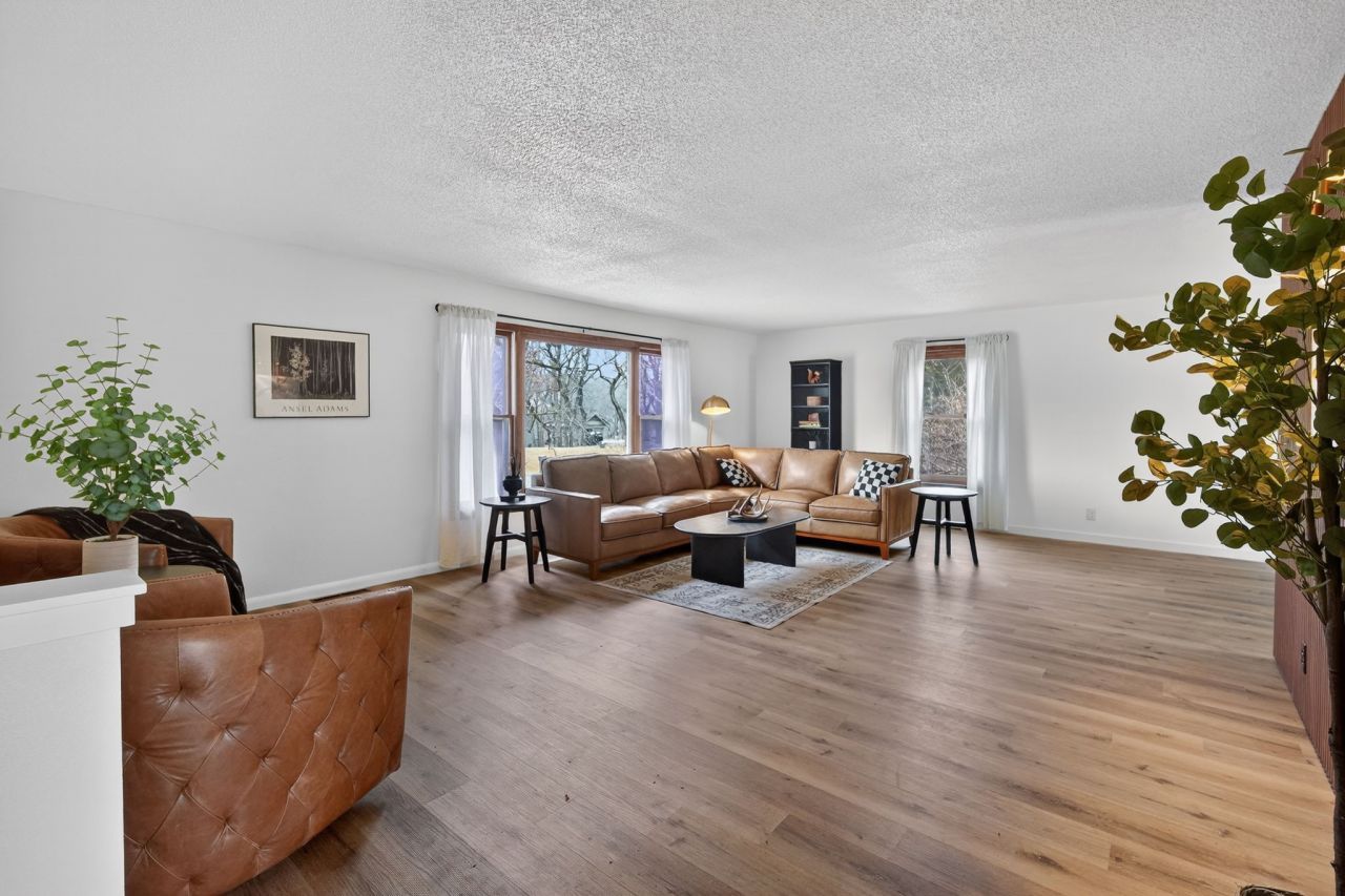 Beautifully updated offshore home on the west side of Lake Panorama! Step inside to a spacious living area featuring durable LVP flooring that flows seamlessly into the dining space and galley-style kitchen. The kitchen offers dark cabinetry, quartz countertops, stainless steel appliances, a tile backsplash, and a pantry tucked behind charming barn doors alongside the convenient main-floor laundry.